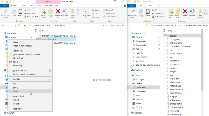 Tiếp theo, sao chép tất cả các tệp và thư mục riêng lẻ mà bạn vừa trích xuất từ tệp lưu trữ quá khổ. Sau đó, nhấp chuột phải vào tệp lưu trữ trống, mới và chọn Dán.
