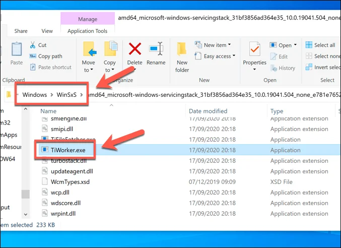 - Điều này sẽ mở ra Windows File Explorer đến vị trí nơi tiworker.exe tệp đang chạy từ. Nếu tệp là một quy trình hệ thống chính hãng, thì quá trình này sẽ định vị tệp trong một thư mục con trong C: Windows WinSxS danh mục.