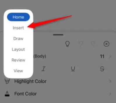 - Trong danh sách tùy chọn này, hãy chạm vào Chèn.