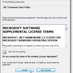 Để cài đặt bổ trợ, hãy nhấp đúp vào .exe tập tin bạn đã tải xuống. Đọc qua thỏa thuận cấp phép cho Hồ sơ khách hàng .NET Framework và nhấp vào Chấp nhận nút để tiếp tục.