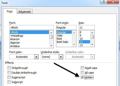 Ẩn văn bản trong Word 2007, 2010, 2013
