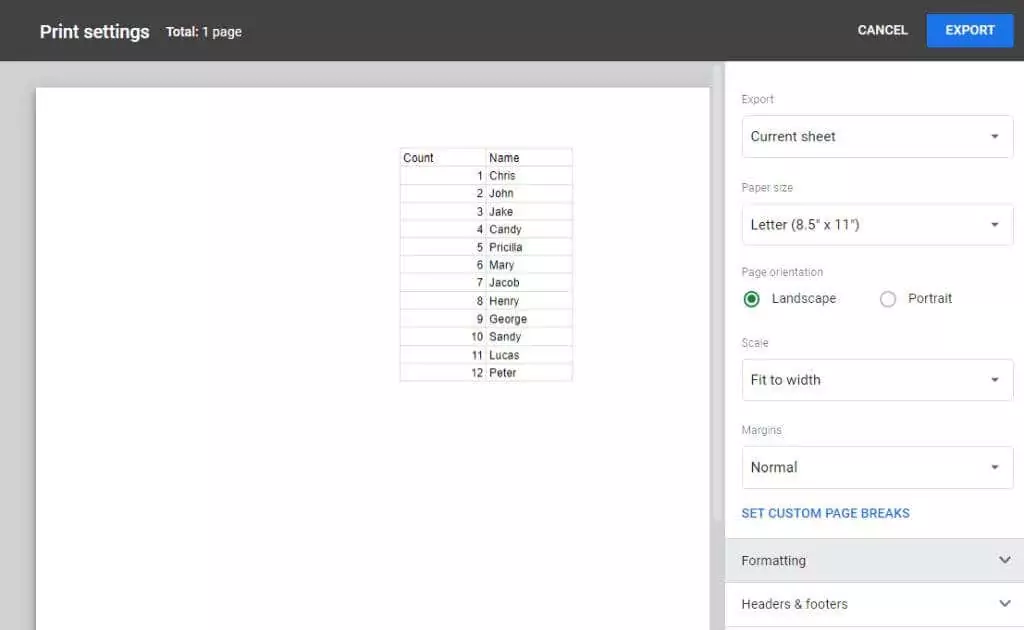 Tùy chọn cuối cùng mà bạn phải chuyển đổi định dạng Google Trang tính sang PDF là sử dụng các tùy chọn in có sẵn trong Google Trang tính.