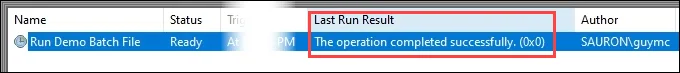 Nếu nó nói bất cứ điều gì khác, hãy thử sử dụng F5 để làm mới màn hình. Nếu nó vẫn còn thông báo bất kỳ điều gì khác, có điều gì đó không ổn với tập lệnh của bạn hoặc cách bạn lập lịch tác vụ. Bạn có một số khắc phục sự cố phải làm.