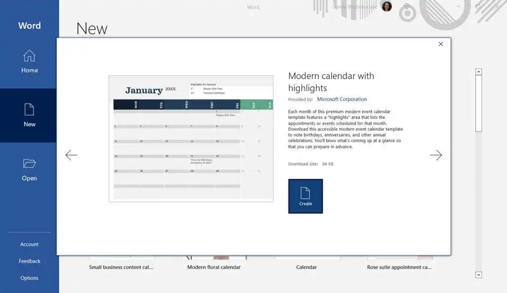 Bạn có thể xem các mẫu lịch trong Word trên Windows, Mac và web. Quá trình thay đổi một chút.