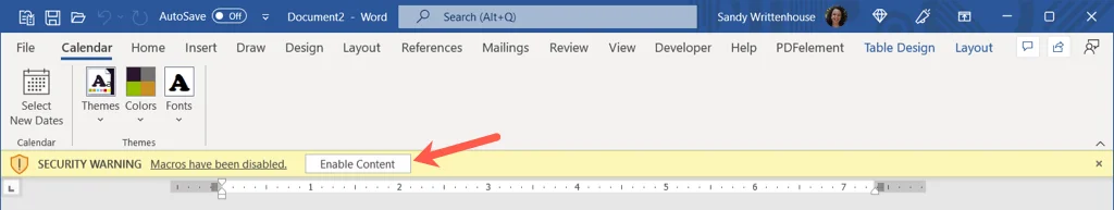 Giống như trên Windows, nếu bạn chọn lịch tương tác sử dụng macro, bạn sẽ cần bật những lịch này trong hộp thoại để sử dụng mẫu.