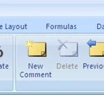 Quy trình cho Excel 2007 giống như trên. Điều đầu tiên bạn muốn làm là nhấp vào ô mà bạn muốn chèn nhận xét. Bấm vào Ôn tập tab trong thanh ruy băng để xem các công cụ chỉnh sửa nhận xét.